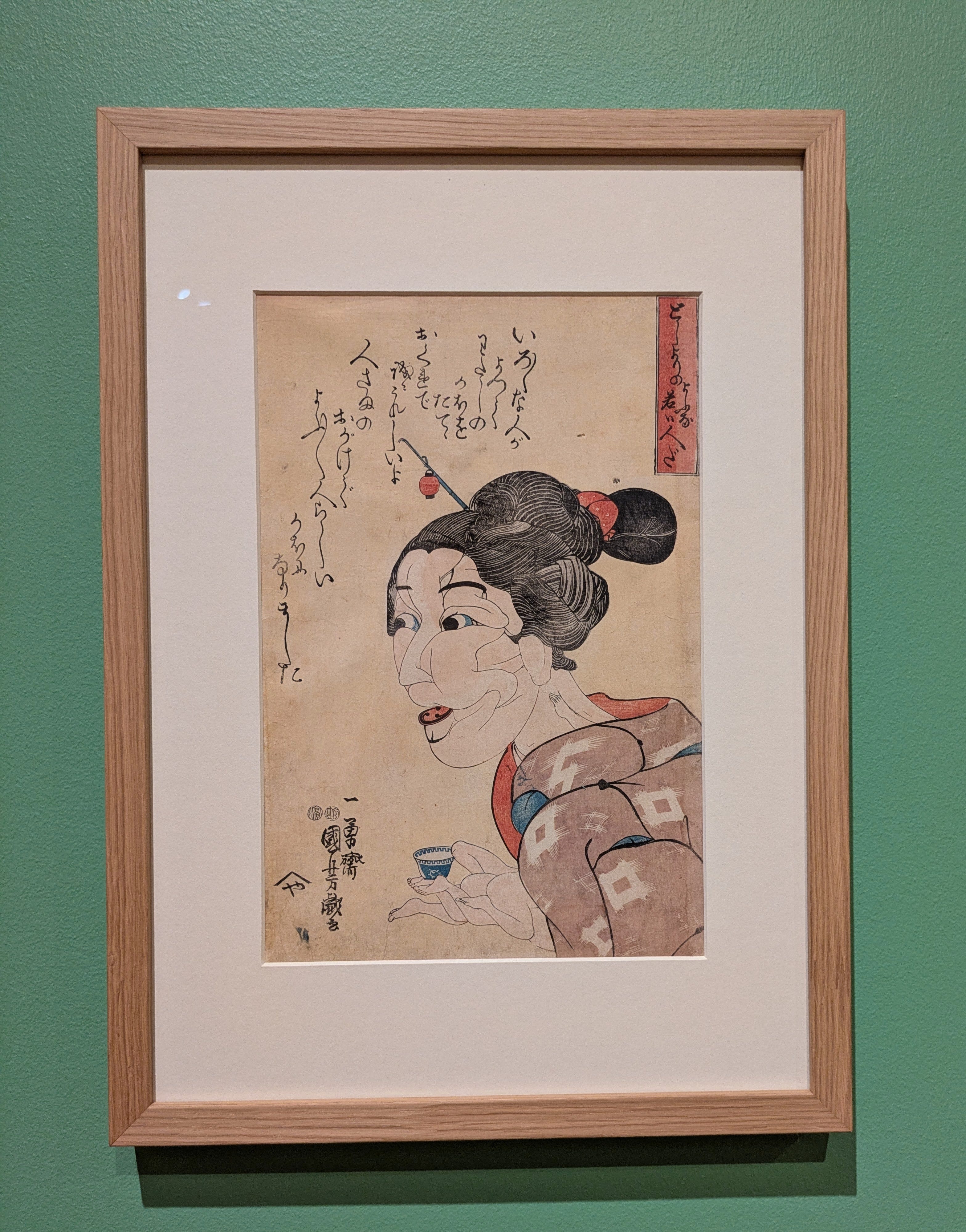 Aside from Hokusai, notable printmakers include in the exhibit are Utamaro, Hiroshige and Utagawa Kuniyoshi. They show the range of aesthetic approaches and social uses expressed in the woodblock print industry of Hokusai’s time, from the familiar to the fantastical to the whimsical.